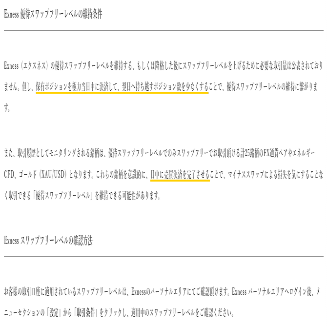要は、スワップフリー分は全てExness側の負担になってしまうので、手数料を取れないような客は特典を剥奪しようということです。